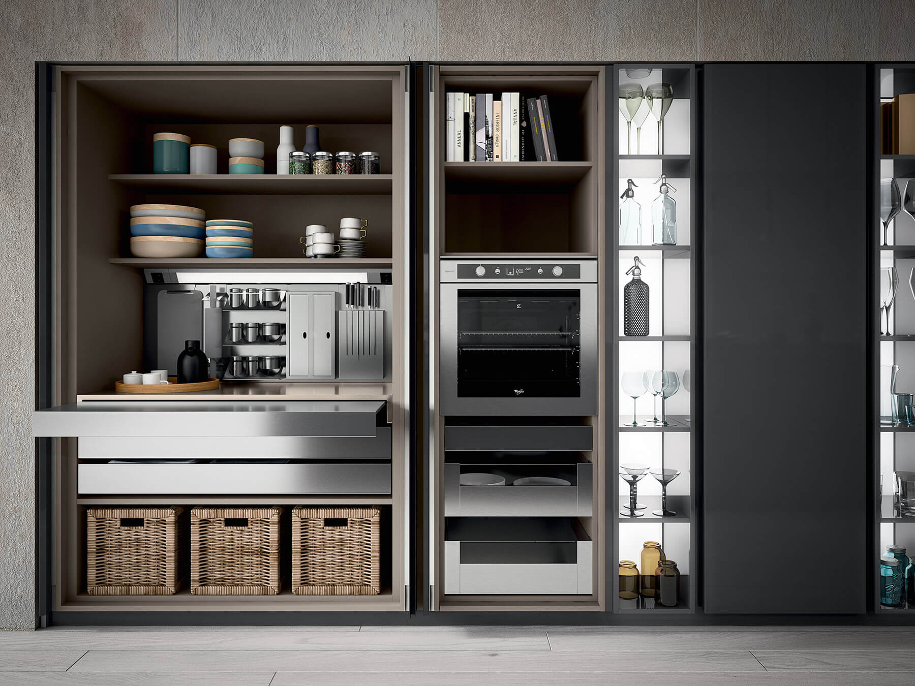 Des nouvelles activités s’invitent aujourd’hui dans la cuisine : travailler, écouter la musique, naviguer sur internet … Arthur Bonnet souhaitait proposer ces nouveaux outils aux utilisateurs de ses cuisines, sans pour autant transformer la pièce à vivre en laboratoire technologique !